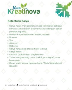 Karya wajib sesuai dengan tema “Mengolah Sampah Menjadi Berkah”.