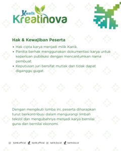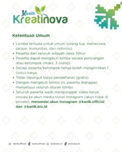 Seluruh peserta wajib mengungggah video karya inovasi ke akun media sosial masing-masing Instagram menandai akun @kanik.official dan @kanik.biz.id.